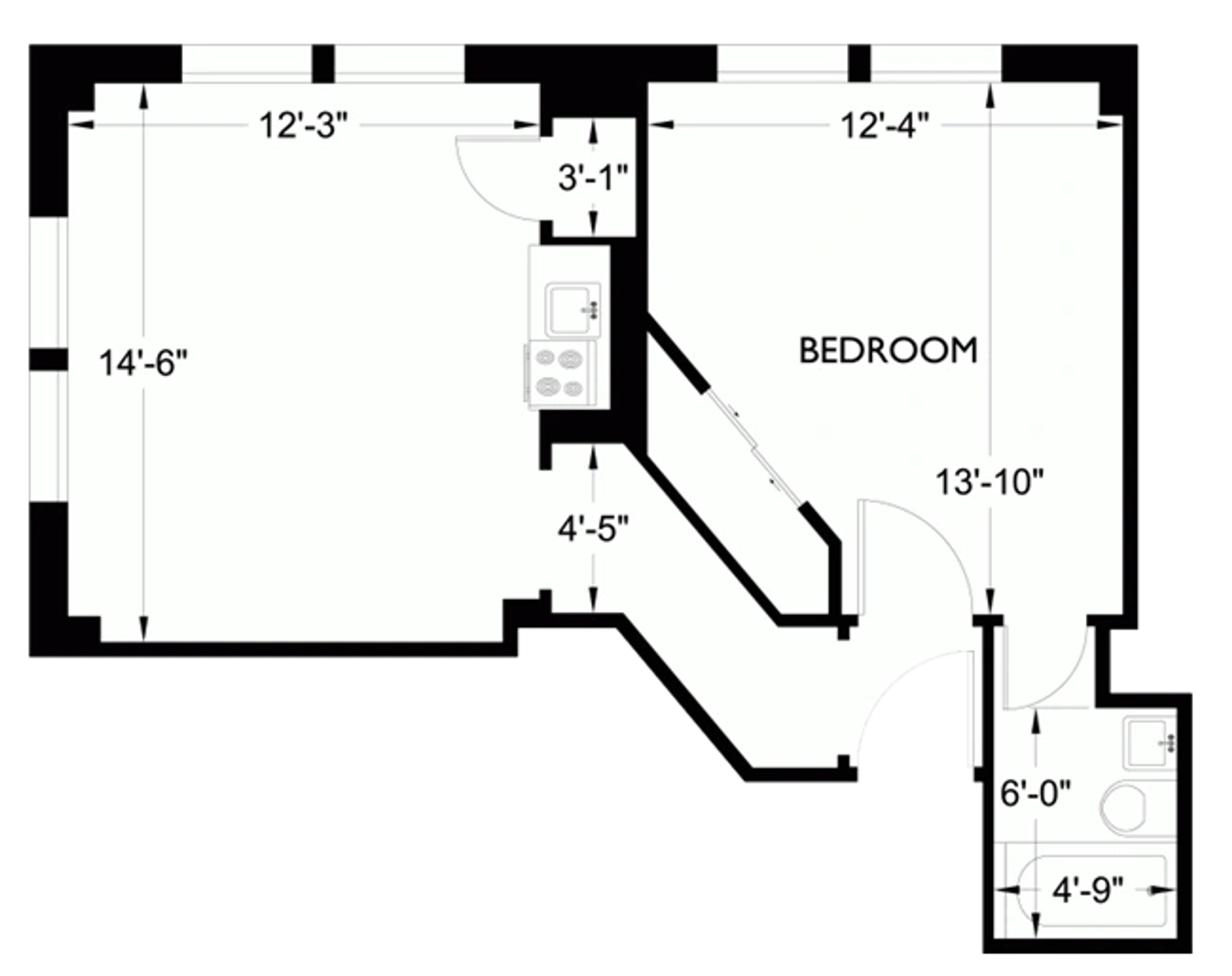 • Thoughtfully designed one-bedroom layout with defined living and sleeping areas